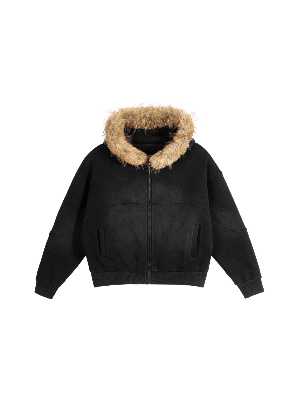 Sun Fade Boxy Detachable Fur Hoodie