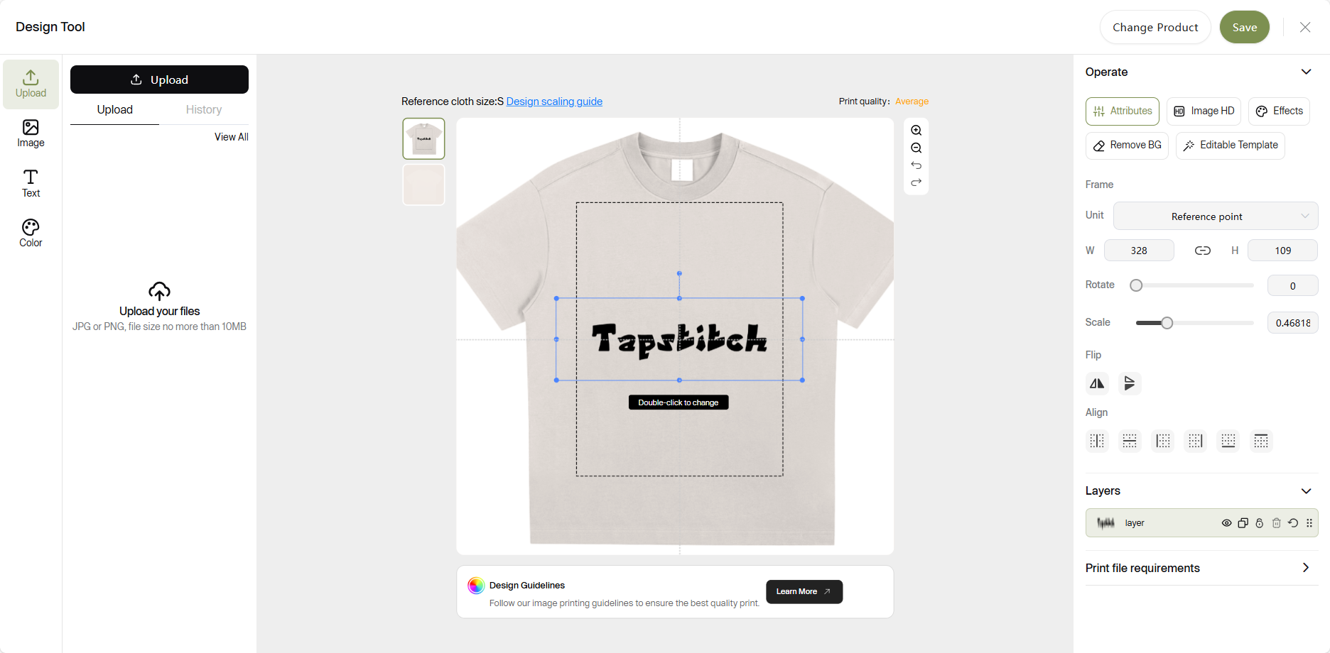 - Upload Your Print In the design tool, upload a clear image of your print.
