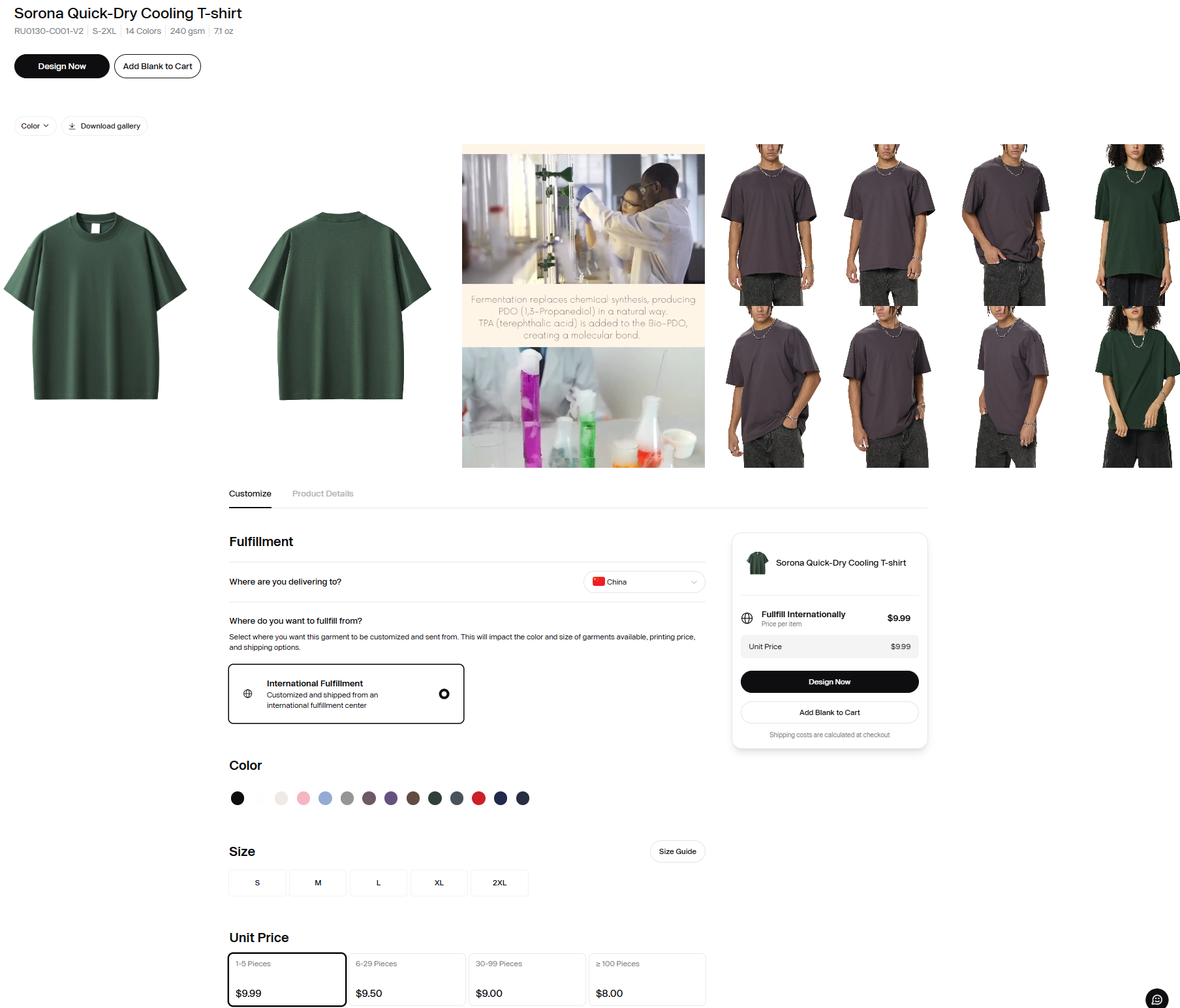 - Access the Design Tool Click on the style to view its product details page, where you can confirm the fabric, color, and other specifications. Then, click Design to open the design tool.