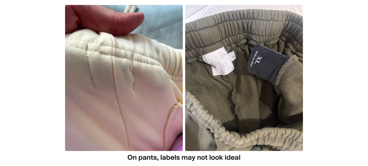 - On pants, labels may not look ideal