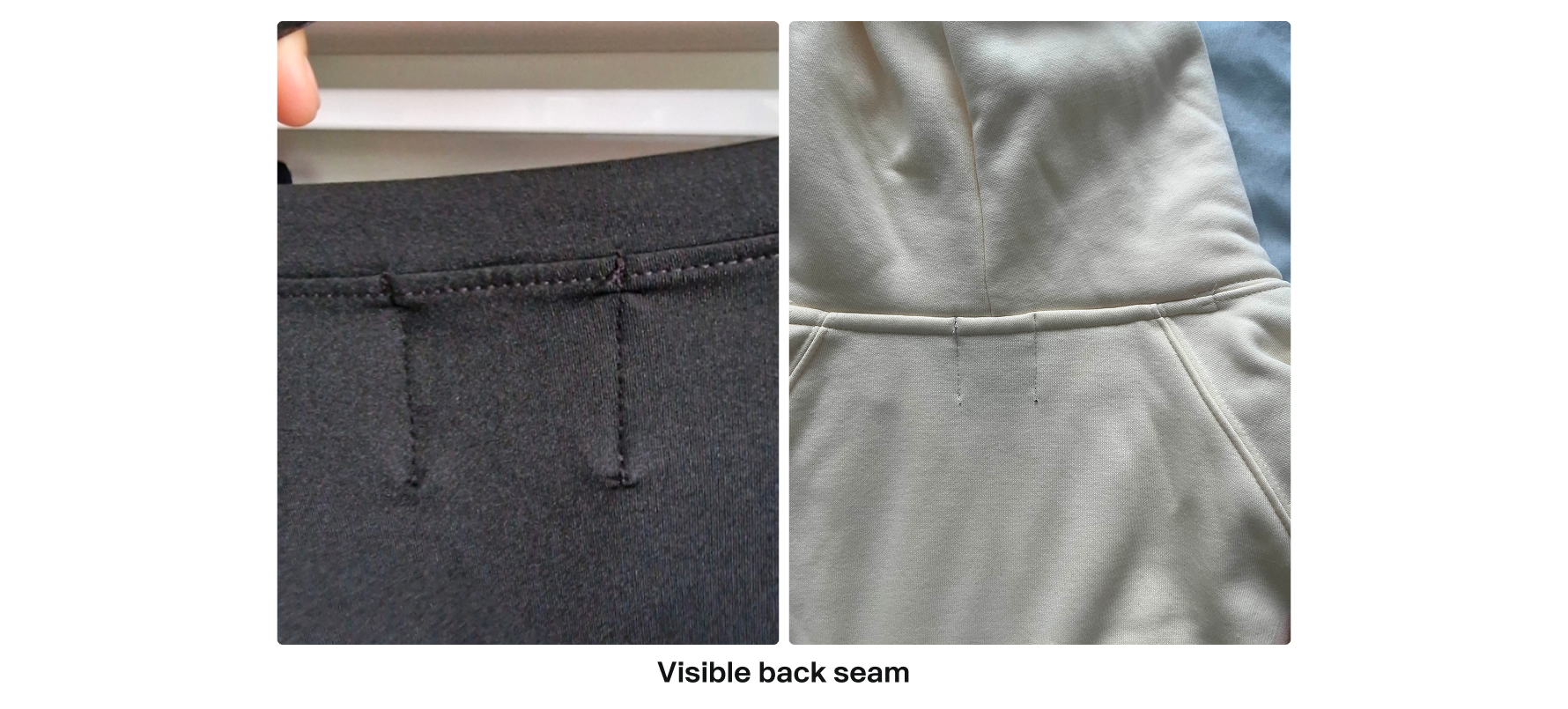 - Visible back seam